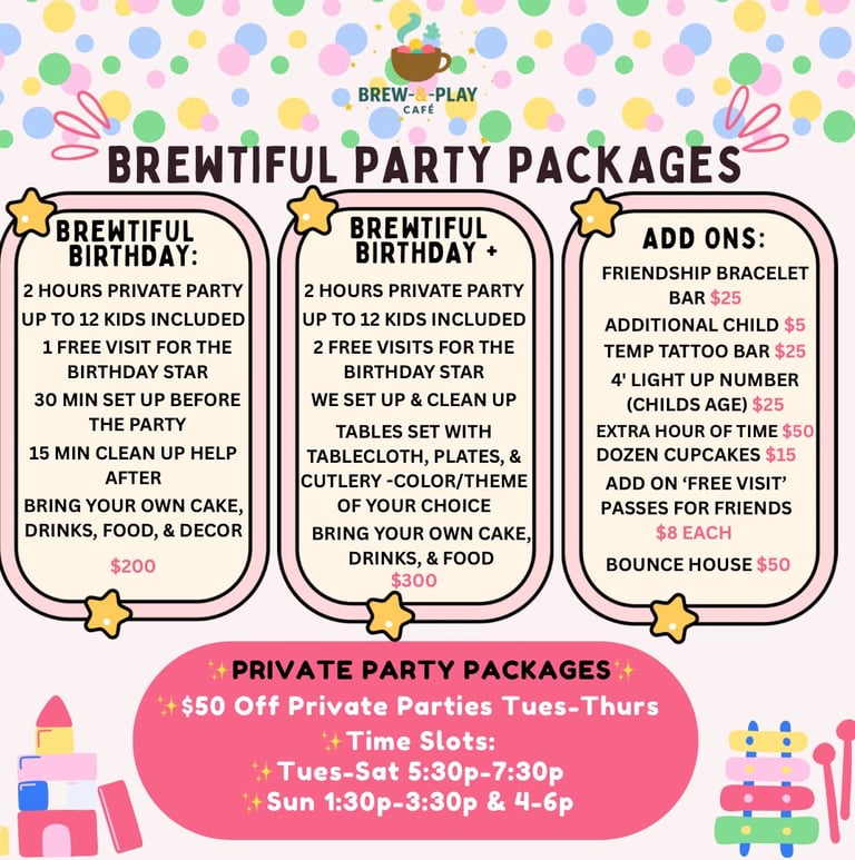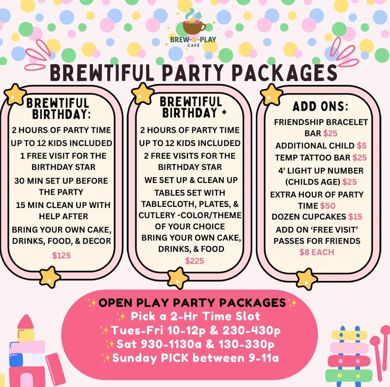Celebrate your child's special day with a private or open play party! ✨
